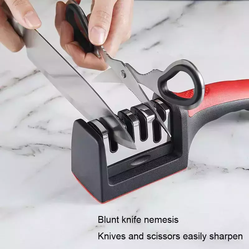 2.Multifuncional:Você pode deixar cada faca de cozinha muito afiada de acordo com o grau de desgaste.Você pode afiar uma faca ou tesoura de maneira fácil e profissional.
