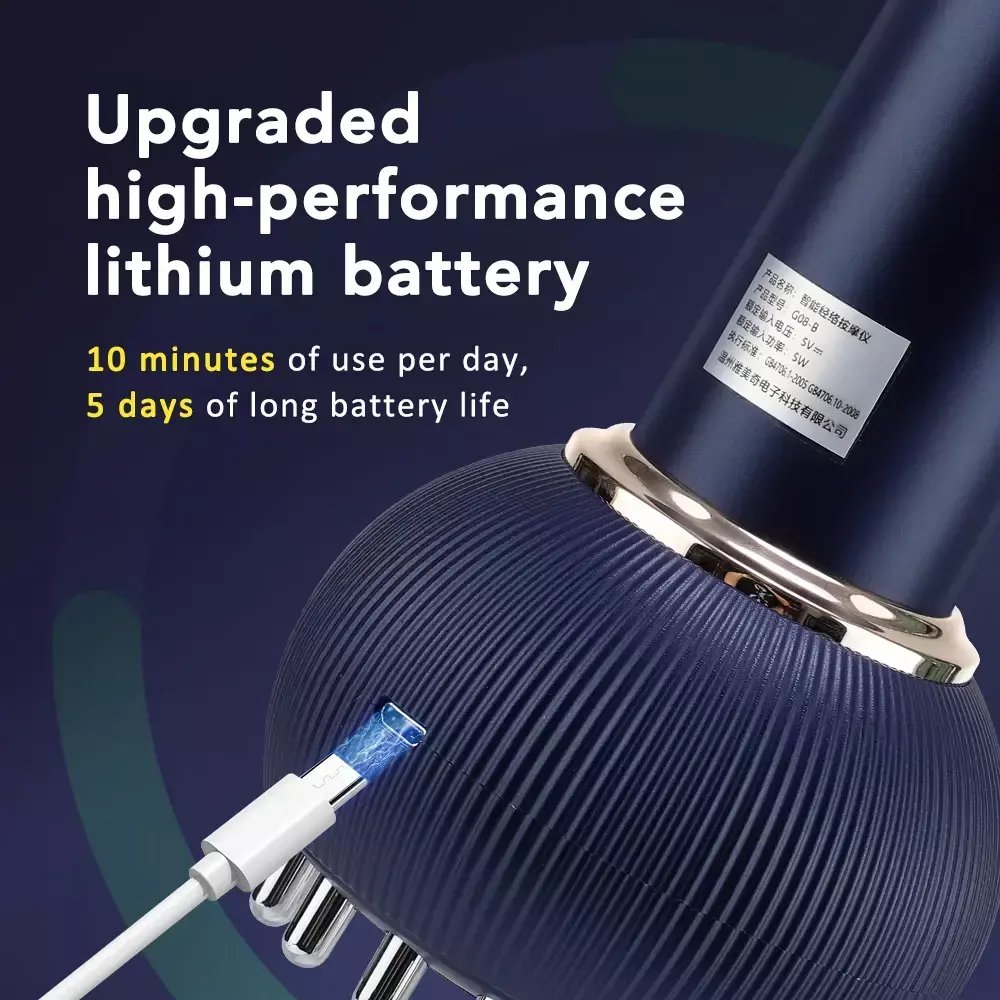 5.Equipado com uma bateria de lítio de grande capacidade de 1200mAh, pode atender às suas necessidades de massagem por 5 dias consecutivos com apenas 10 minutos de uso por dia, eliminando a necessidade de carregamentos frequentes.