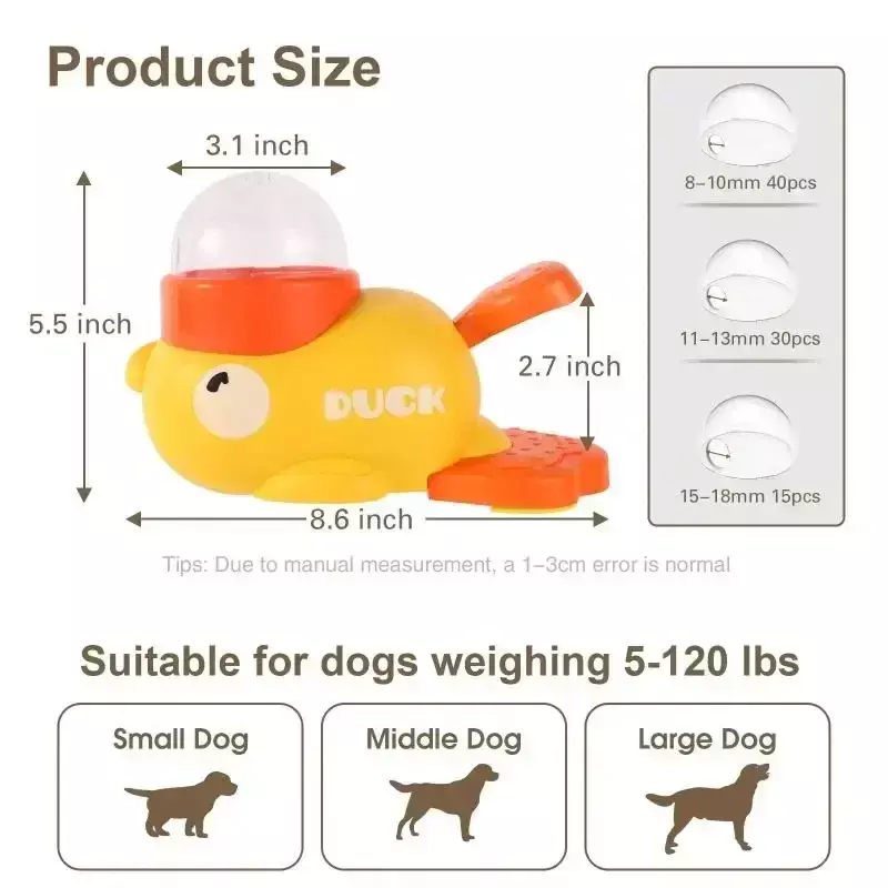 O dispensador de guloseimas em forma de pato amarelo incentiva o jogo interativo, potencializando a estimulação mental do seu cão.