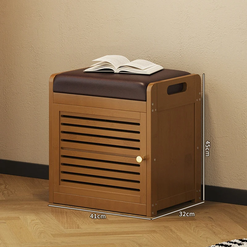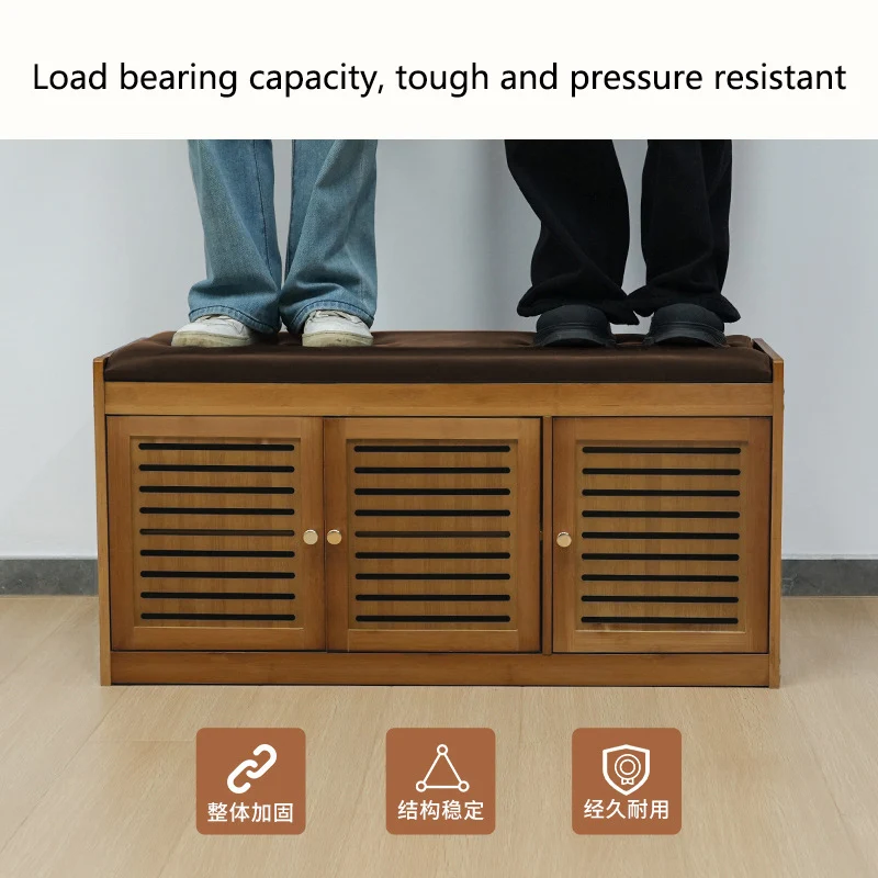 Não apenas um banquinho, mas também um armário de sapatos resistente que pode acomodar pessoas.Bambu natural selecionado para construção, com estrutura geral reforçada, tornando-o tão estável quanto uma rocha mesmo quando suporta duas pessoas, e sem balançar ao sentar por longos períodos de tempo.Bolsa macia de esponja de alta elasticidade combinada com couro resistente ao desgaste, não machucará seus pés ao trocar de sapatos por longos períodos de tempo;Puxador redondo de metal + porta com veneziana respirável, equilibrando estética e praticidade, cada detalhe resiste ao mais perto olhar.