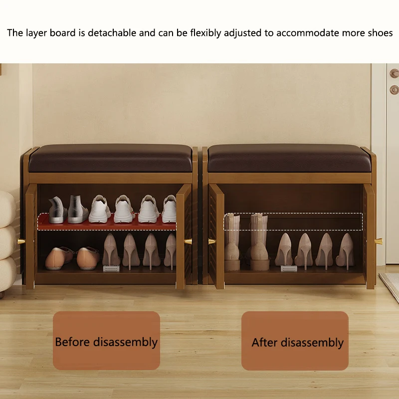 Uma ferramenta versátil que pode ser integrada em vários estilos de decoração de casa.De porta simples a porta tripla, existem vários comprimentos à escolha, adaptando-se perfeitamente a entradas de diferentes larguras.Além de guardar sapatos, também pode se transformar em mesa de sala, banco de quarto ou espreguiçadeira de varanda.Padrão de bambu quente combinado com bolsa macia marrom escuro, com um novo estilo chinês, japonês e minimalista moderno, exala estilo onde quer que seja colocado.