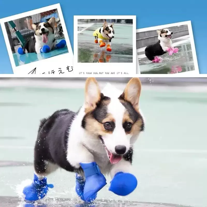 2.As lindas botas são sapatos de chuva protetores para o seu adorável cachorro, que são feitas de material de borracha durável e flexível.