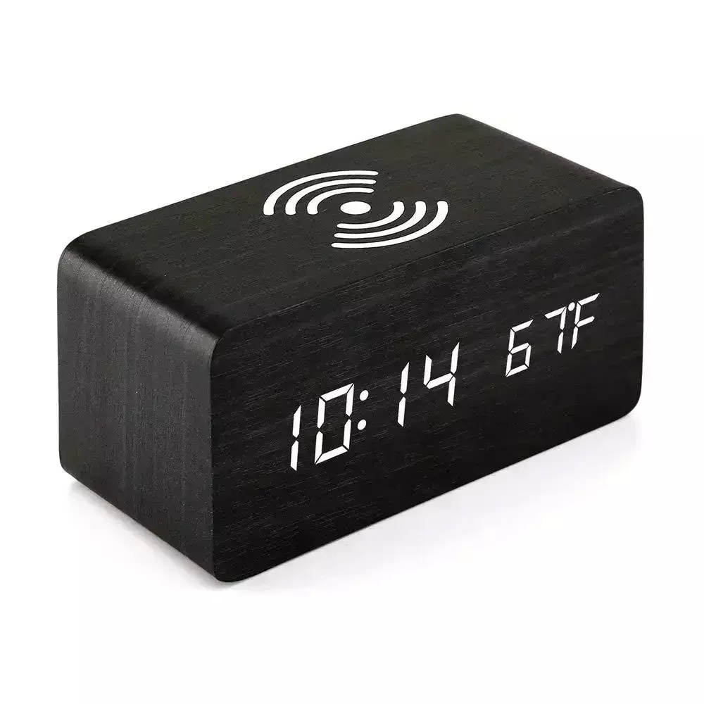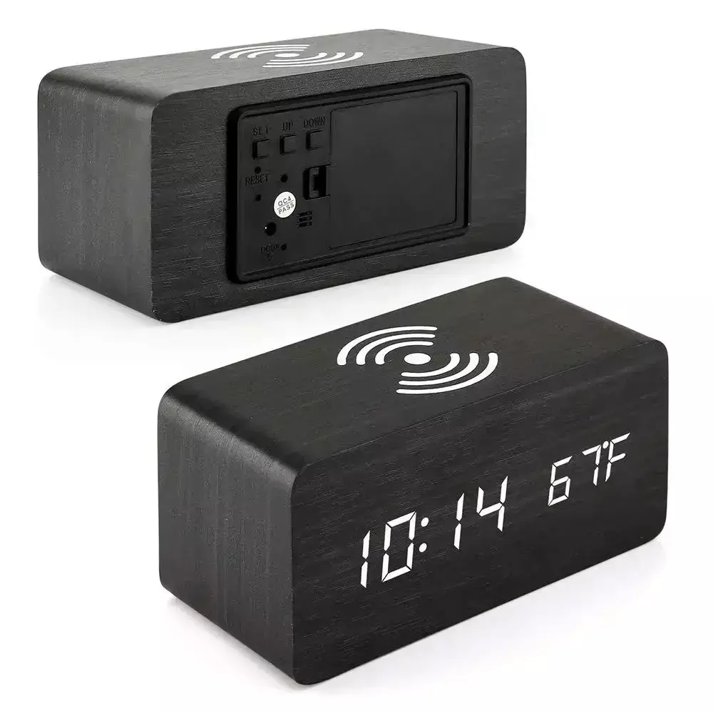 You can set up to 3 alarms in a few minutes intervals to replace the snooze function. And for your convenience, it can also be used as a Qi wireless charger for compatible Samsung or iPhone models, simply place your phone on the top of the clock, and it'd start charging automatically.