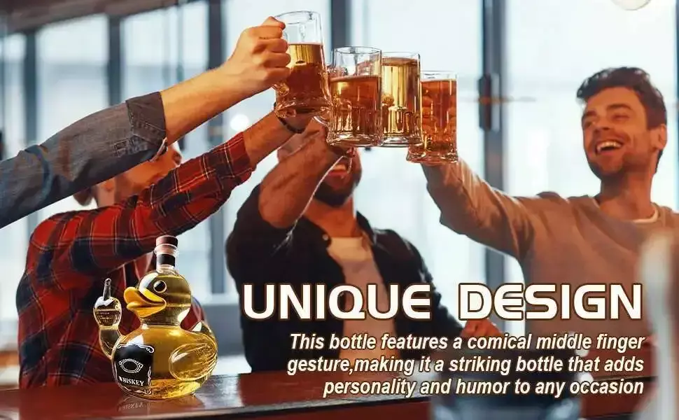 Uso versátil: esta divertida garrafa de pato de uísque de dedo médio não é apenas para uísque; é perfeito para armazenar vinho, cerveja ou qualquer bebida de sua escolha, garantindo que você possa desfrutar de suas bebidas favoritas com estilo