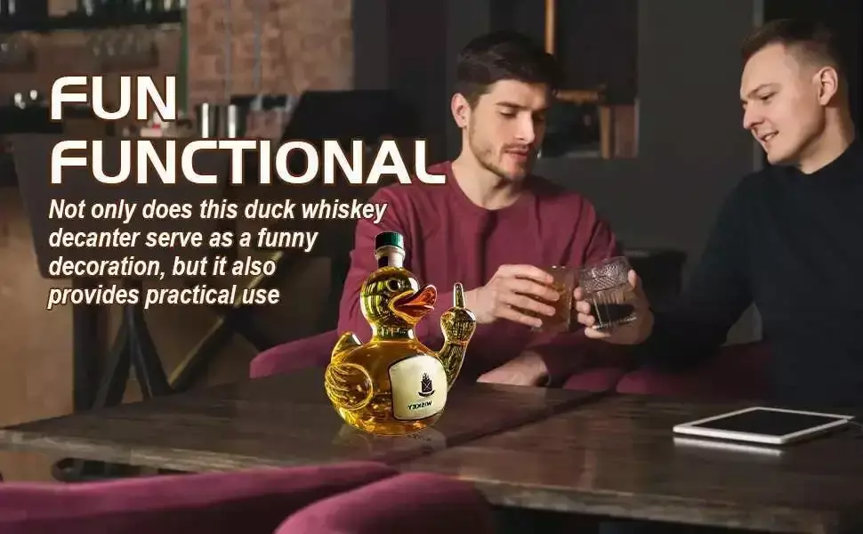 Funcional: Este decantador de uísque de pato não apenas serve como uma decoração engraçada, mas também proporciona um uso prático.Transforme sua experiência de beber com isso combina humor e funcionalidade perfeitamente!