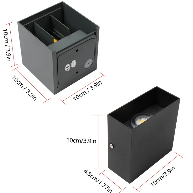 Design moderno cubo minimalista, Brilho para cima e para baixo, há duas placas de deslocamento dentro para ser rotativo para ajustar a faixa de irradiação, ângulo de feixe máximo até 100 graus. Após a instalação, a tampa da lâmpada é destacável, o que torna conveniente ajustar o ângulo do feixe ou limpá-lo regularmente.