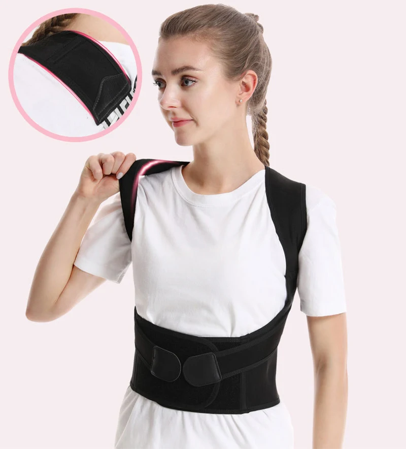 Características: fácil de usar, ajustável, corretor de postura, suporte para as costas