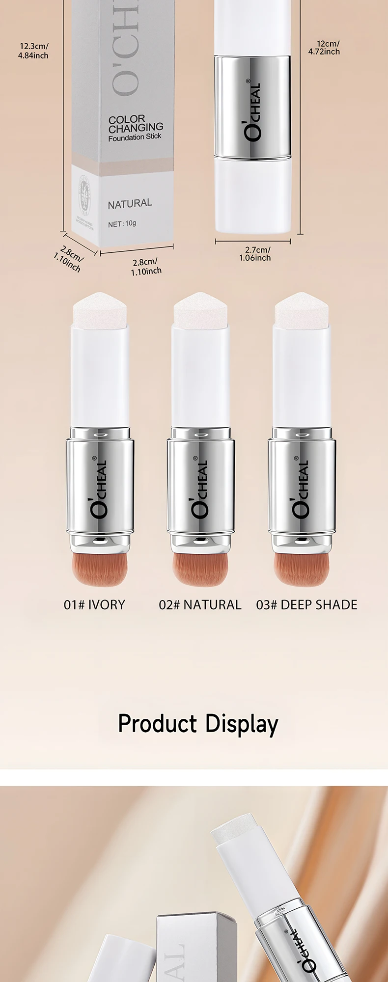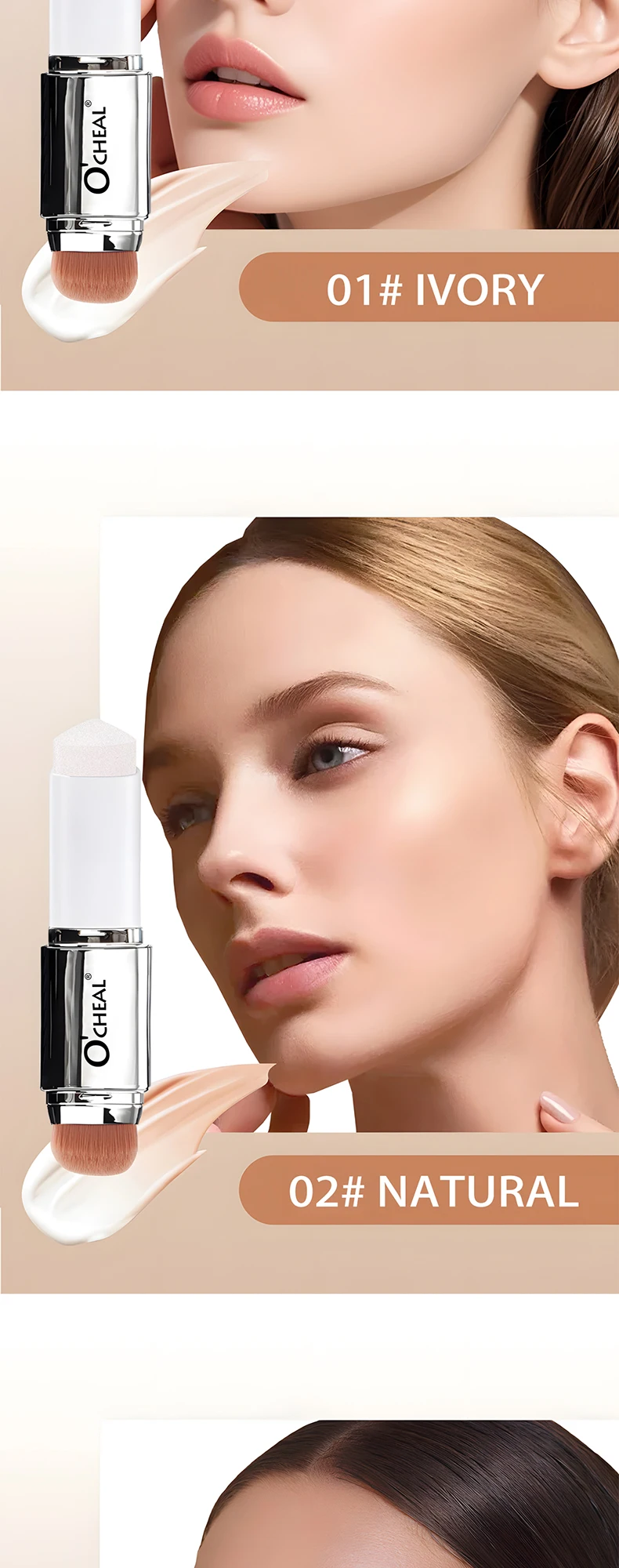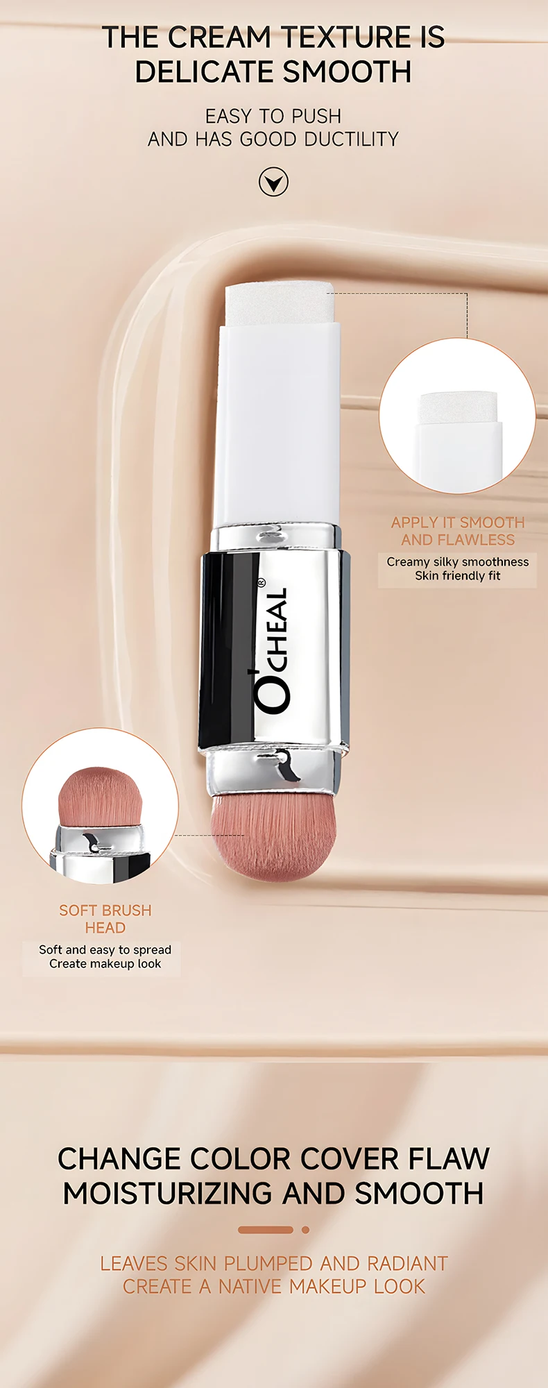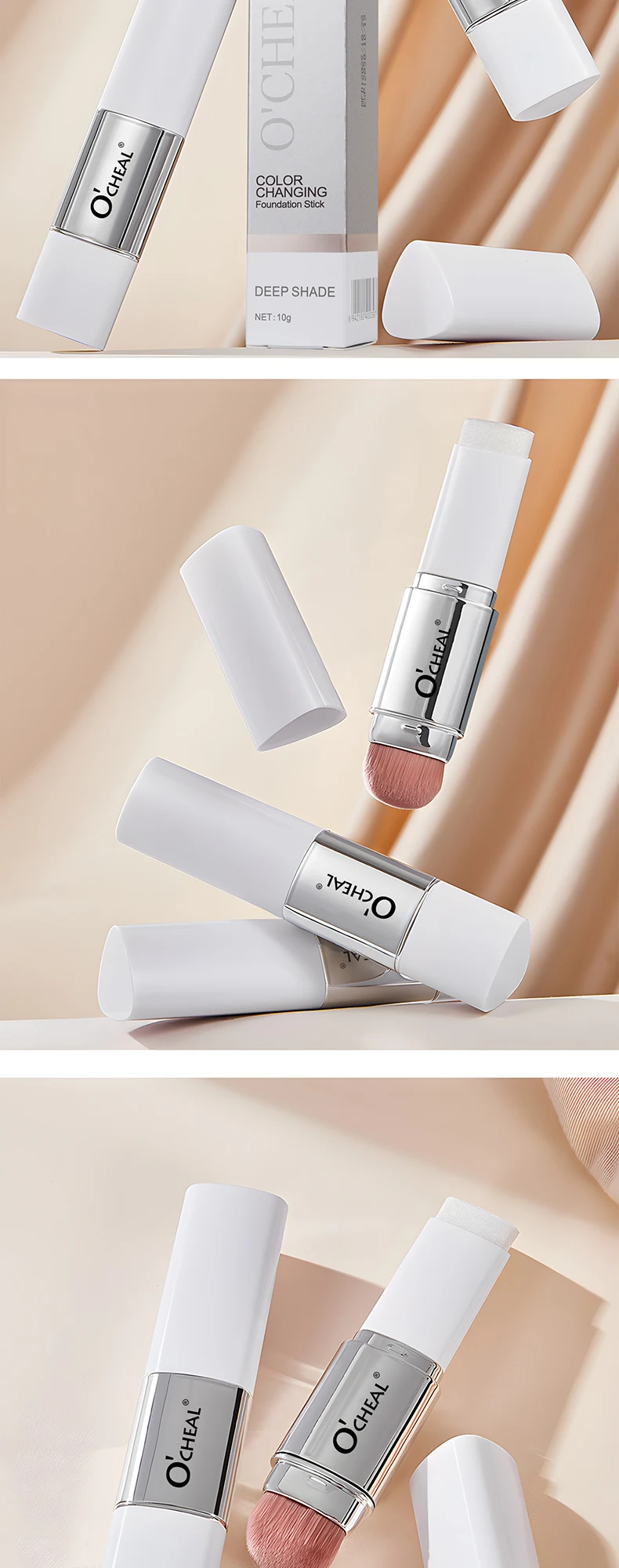 O'CHEAL Base em bastão que muda de temperatura, cobertura fosca, manchas nos poros, duas cabeças, com pincel, à prova d'água, hidratante, duradouro, cobertura facial, creme de maquiagem
