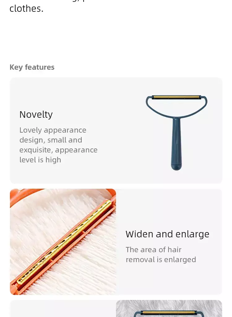 • Design frente e verso para uma limpeza eficiente:O raspador de cabelo para roupas tem um design dupla face que permite uma limpeza eficiente, facilitando a remoção de bolas de cabelo e fiapos de roupas.