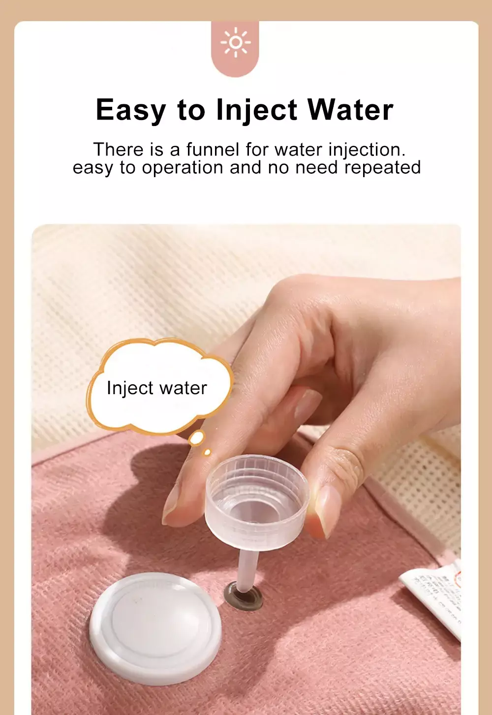 2.Por favor, não toque diretamente na bolsa de água quente por muito tempo para evitar queimaduras. NÃO para uso do bebê sozinho.