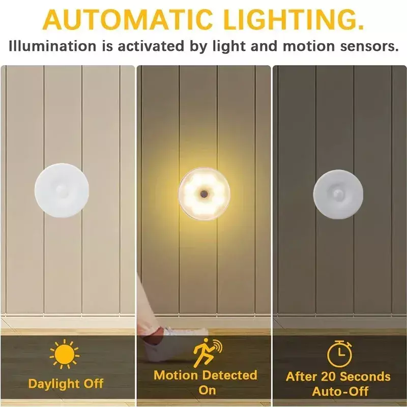 1. Motion sensor light Indoor Rechargeable will turn on automatically when you come close within 3-5M and automatically turns off 20 seconds after motion stops. Ideal for hallways, Closet Rooms, stairways, basements and many more commercial or residential applications. Get your life more convenient!