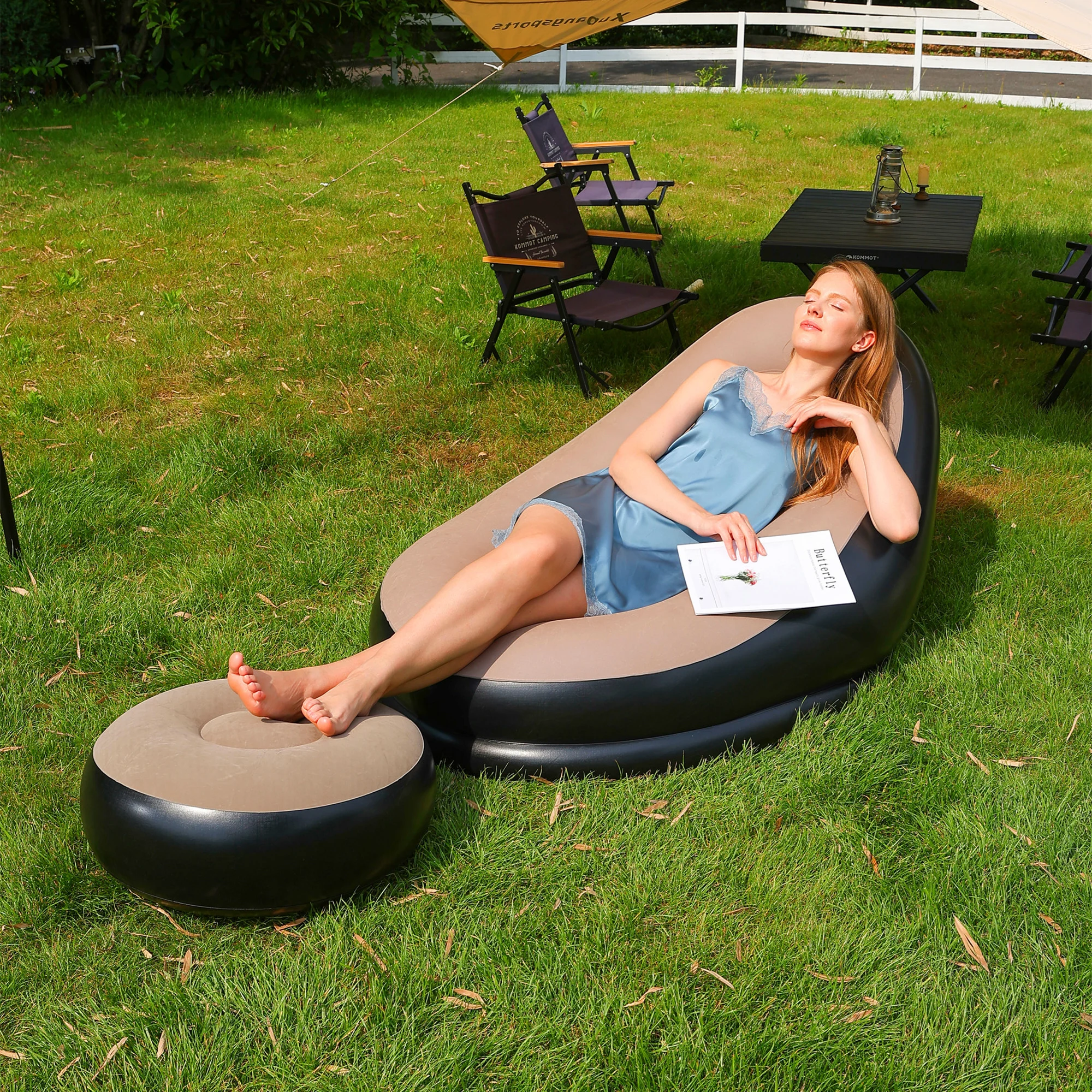 Cadeira espreguiçadeira de material premium: este sofá inflável de sofá de ar é feito de rebanho de alta qualidade na superfície superior e material de PVC grosso na parte inferior, 100% seguro e ecológico, mais durável de usar e não é fácil de ser perfurado.