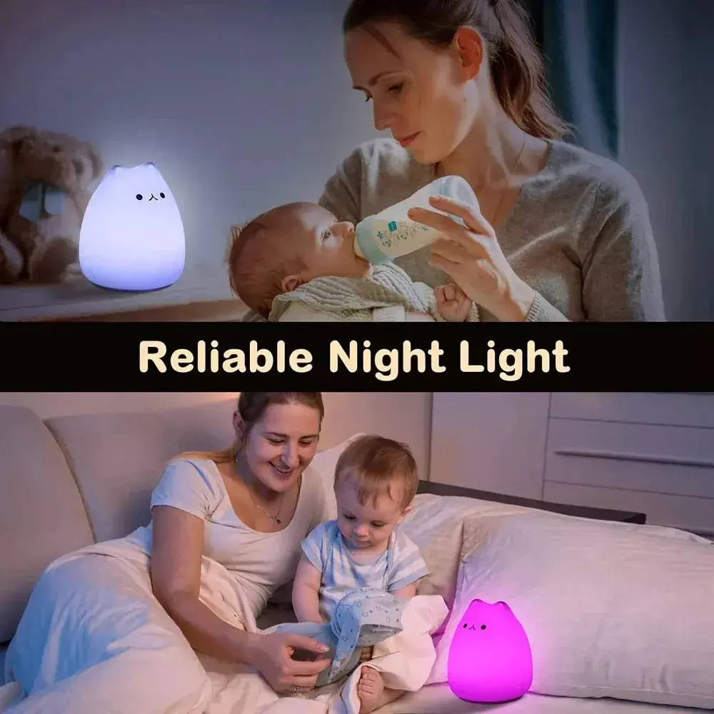 Toque luz noturna colorida gato silicone animal luz led luzes dos desenhos animados lâmpada de silicone quarto decoração luzes iluminação cabeceira